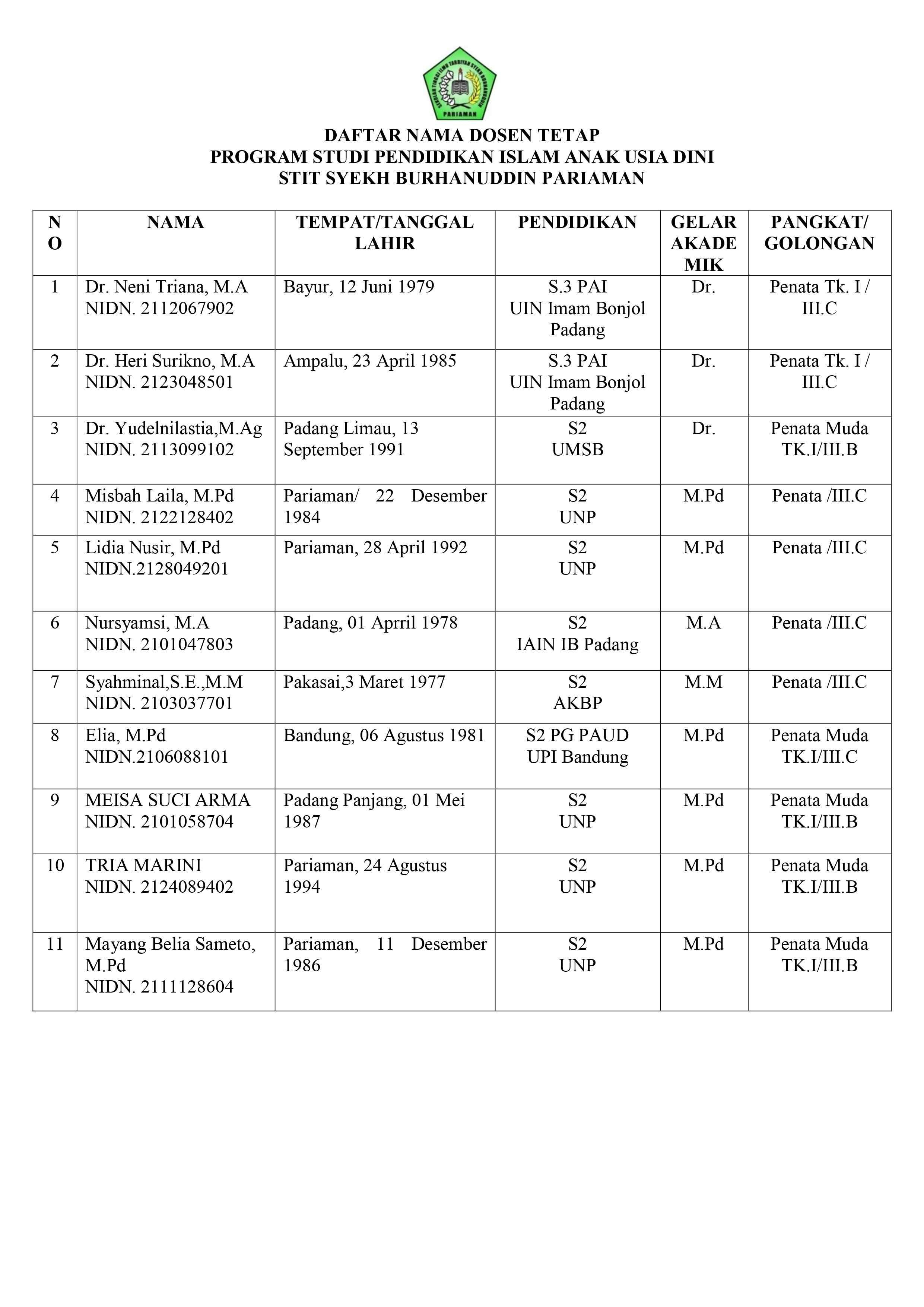 DATA DOSEN PIAUD